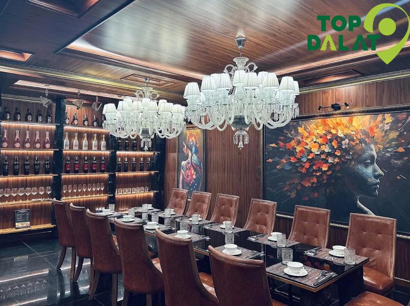 - Khu nhà hàng: rộng rãi, trần cao, trang trí với đèn chùm pha lê, bàn ghế gỗ cao cấp và hệ thống kính lớn nhìn ra đường phố Đà Lạt mộng mơ.