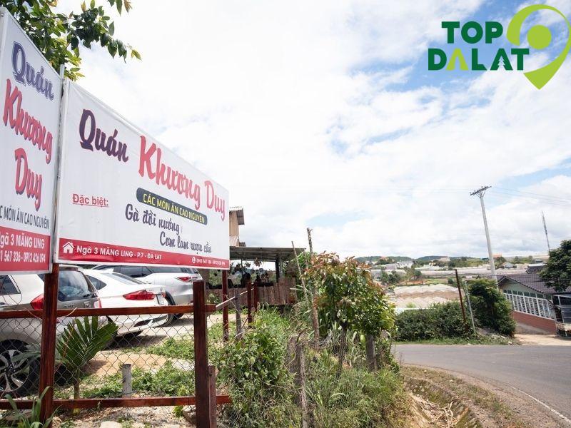 Không giống như nhiều quán ăn mang phong cách hiện đại, Khương Duy giữ lại trọn vẹn sự mộc mạc, dân dã trong không gian, cách chế biến, đến phong cách phục vụ. Quán tọa lạc ở vị trí khá dễ tìm, cách trung tâm khoảng 10 phút đi xe, nằm gần các địa điểm du lịch nổi bật như Thung Lũng Vàng, Hồ Suối Vàng…